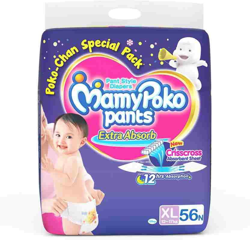 Mamy poko pants provides increased absorption and gives your baby a peaceful night sleep so that he wakes up smiling in the morning.as your baby learns to crawl, they get more active by the day. Please provide a valid price range. Your child's growth and development is amazing every day. 4.3 out of 5 stars 12,156. Mamypoko pants now comes with new extra absorb feature that provides increased absorption for up to 12 hours and mamy poko pants easy to easy to remove.