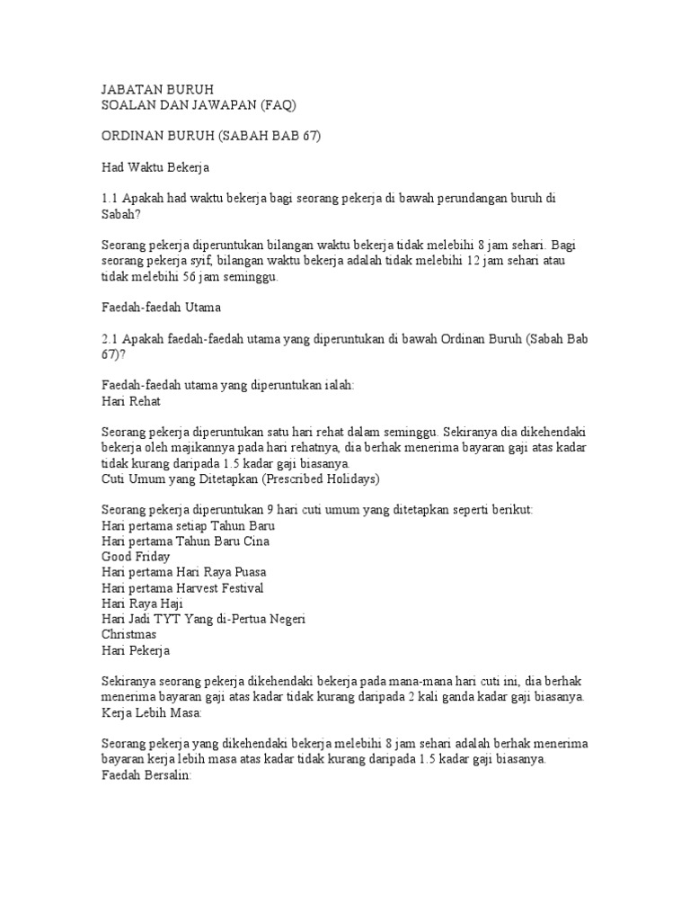 Related : Undang Undang Buruh Kerja Lebih Masa : Waktu sebelum, selama dan sesudah masa kerja..